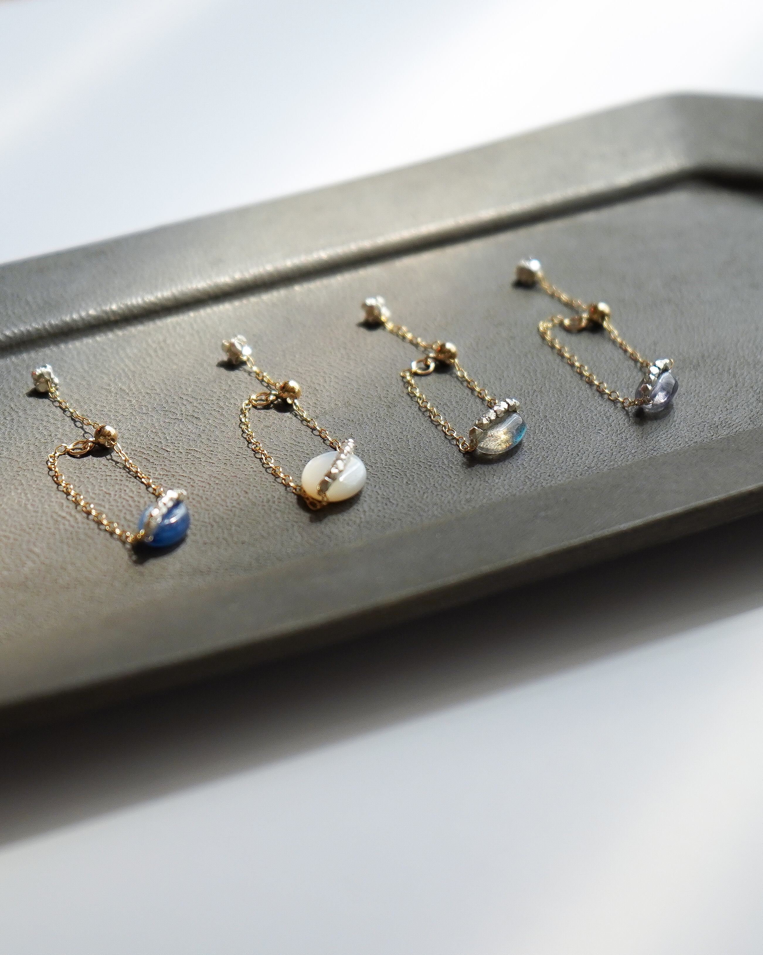 ・金具や天然石などは汗や水、石鹸などでどうしても酸化してしまいます。ご着用後は乾いた布やテュッシュペーパーなどで優しく拭いていただくとより長くご使用いただけます。