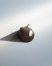 チェーンの先にはカレンシルバービーズで仕立てた満月が隠れています。