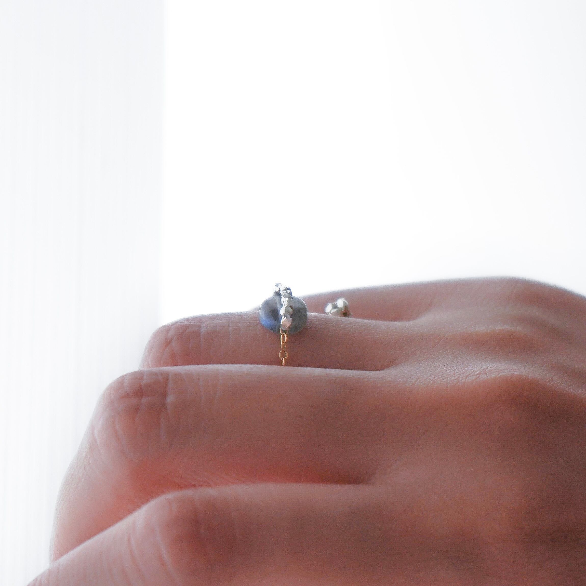 ラブラドライトは、一見するとグレー系の落ち着いた色味です。