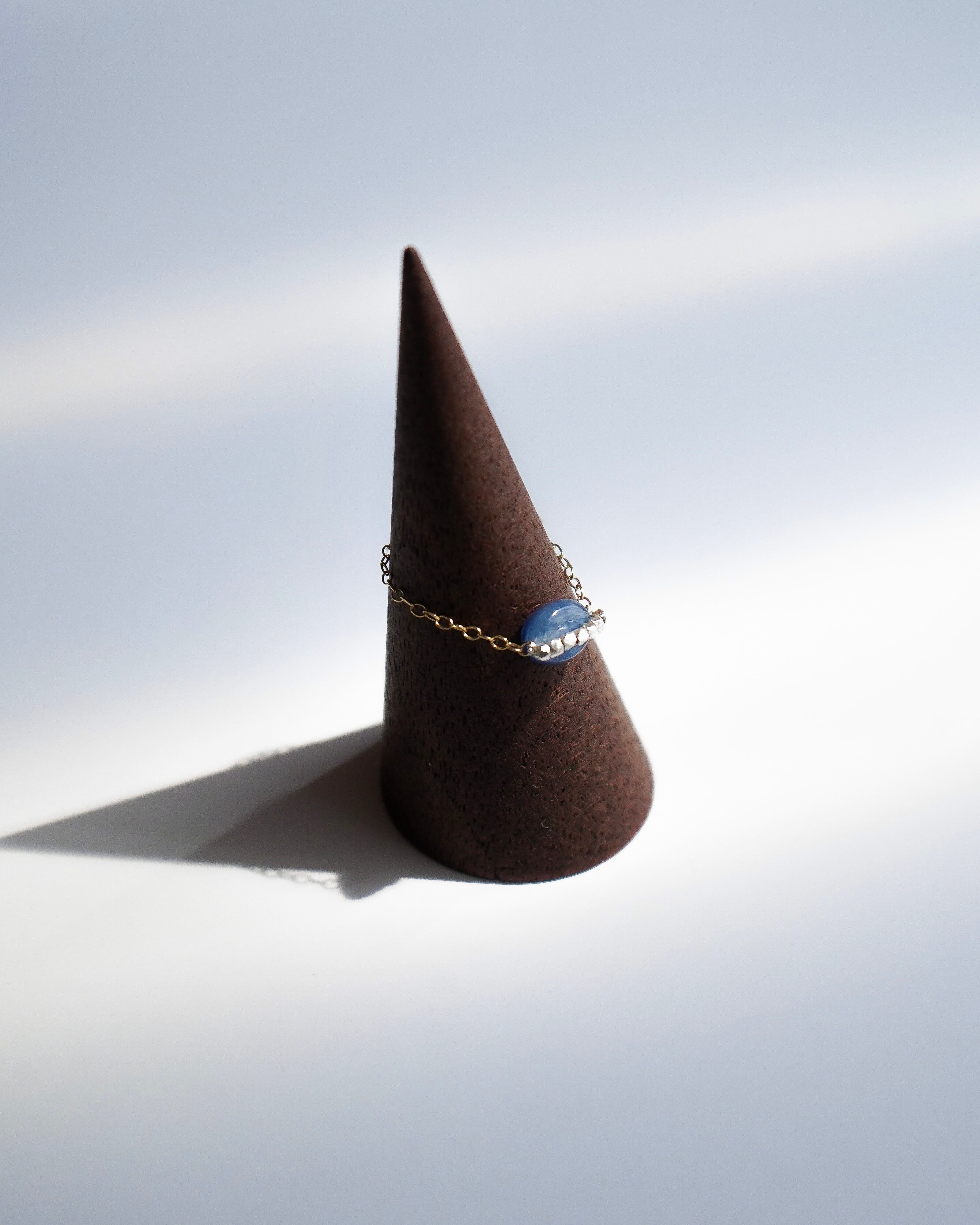 時とともに移り変わる空色のような天然石に、カレンシルバーのビーズで三日月を浮かべました。